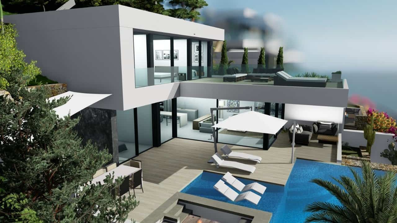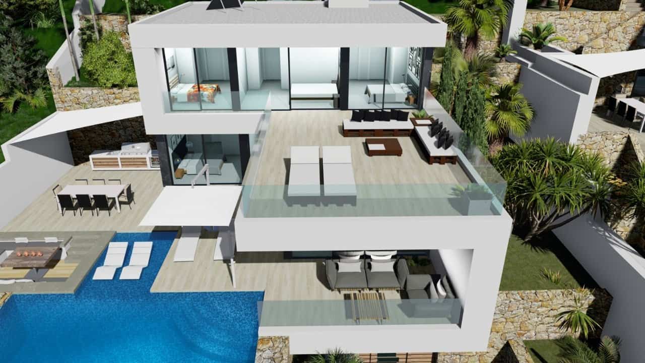 Nieuwbouw villa te koop met zeezicht in Calpe, gelegen in een rustige woonwijk op 2km van Puerto Blanco en het strand. Op het gelijkvloers is er een ruime woonkamer met een open keuken die toegang geven tot het terras, het overloop zwembad en de BBQ zone. Verder is er een tweepersoons slaapamer met een en-suite en een dressing en is er een gastentoilet. Op de eerste verdieping zijn er 3 tweepersoonsslaapkamers, allen met dressing, en-suite en terras. In de kelder, die met een lift verbonden is met de rest van de woning is er grote dubbele garage, een inkomhal, een multifunctionele ruimte van 60m2, een opbergruimte, een bijkeuken en een badkamer. De villa wordt gebouwd met uitsluitend hoogwaardige materialen, meer informatie op aanvraag beschikbaar.