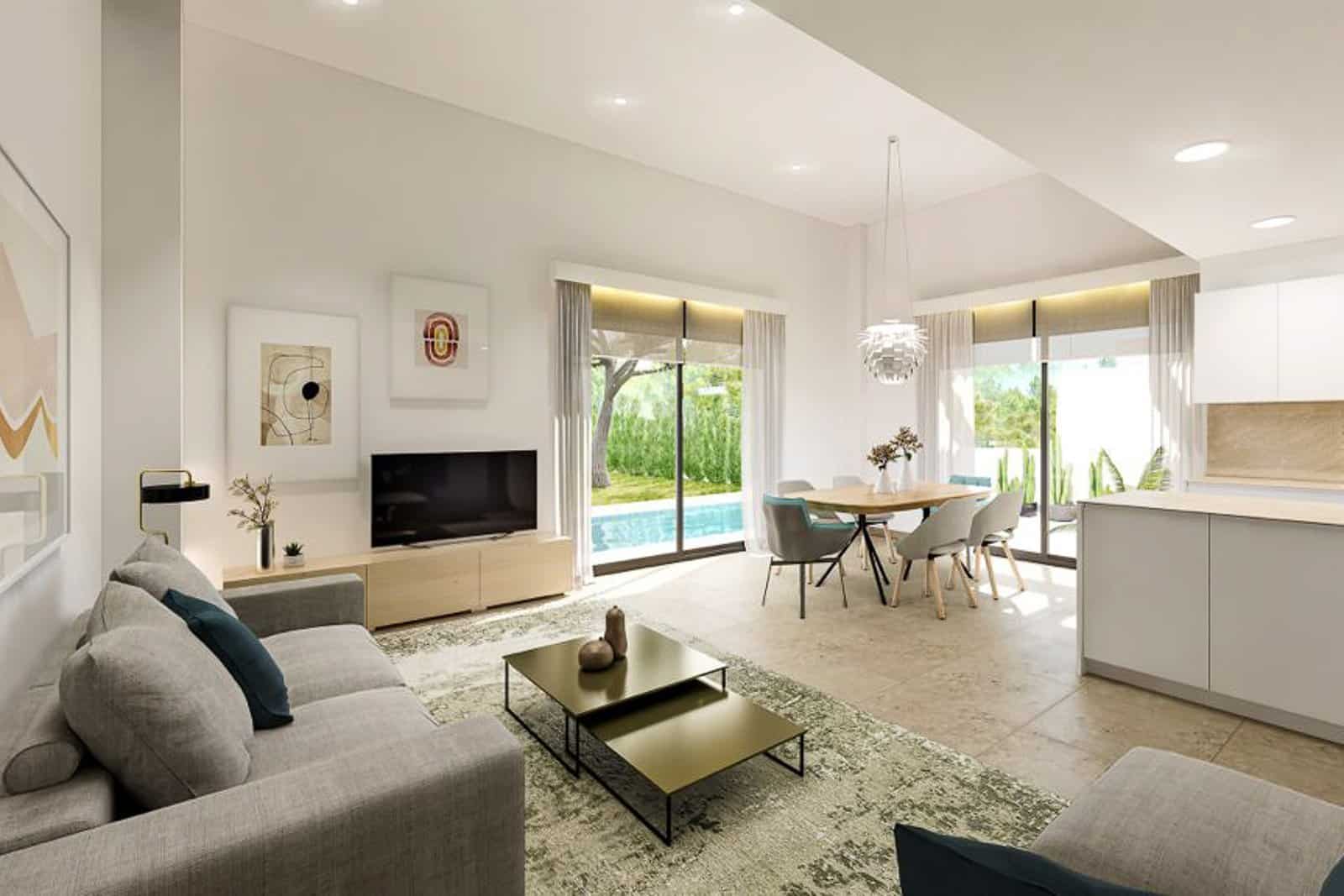 Die Villa verfügt über eine bebaute Fläche von ca. 270 m² und überzeugt mit einer modernen, eleganten Aufteilung. Herzstück ist ein großzügiger Wohn- und Essbereich mit offener Küche. Es gibt drei Doppelschlafzimmer, darunter eine Master-Suite, sowie zwei weitere Badezimmer.