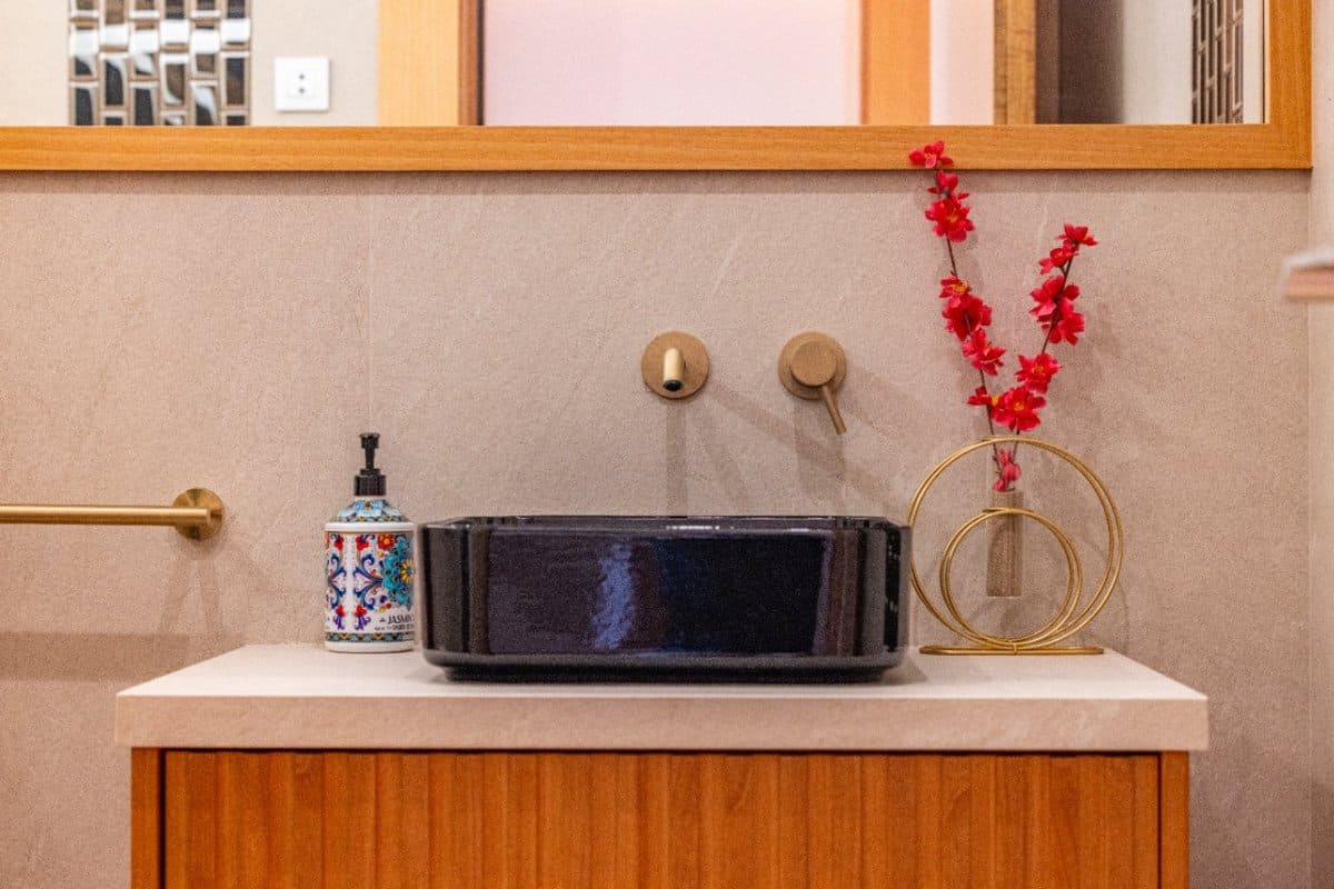 The open living space is designed for modern day-to-day comfort and includes a projector and screen, allowing the lounge to be used as a private cinema. Thanks to its south-facing orientation, the apartment enjoys abundant natural light throughout the day. The bathrooms are finished with quality details, combining style with everyday practicality.