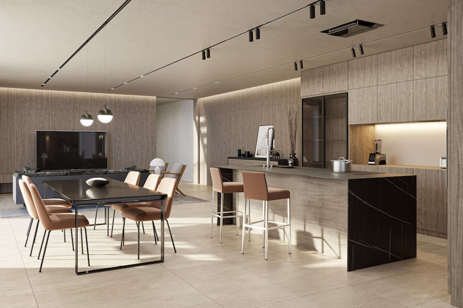 Die Küche ist mit hochwertigen BOSCH-Geräten und Silestone-Arbeitsplatten ausgestattet. Die Badezimmer sind mit rutschfesten Porzellanoberflächen und GROHE-Armaturen ausgeführt. Für ganzjährigen Komfort sorgen DAIKIN-Klimaanlage und Fußbodenheizung.