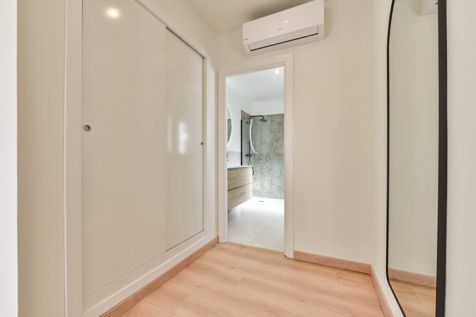 The upper floor comprises two double bedrooms, both with en-suite bathrooms and direct access to a large balcony.