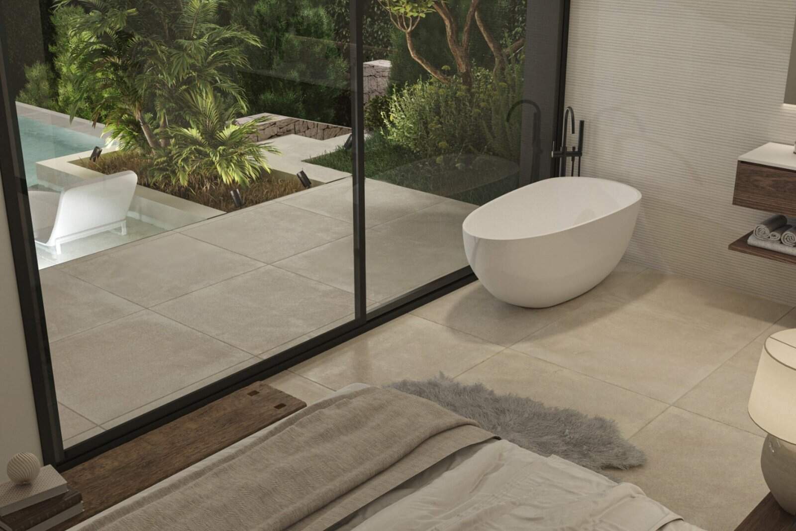 The villa features modern, elegant architecture and is distributed over two levels. Inside, there is a spacious living and dining area with plenty of natural light, a fully equipped kitchen with high-quality appliances and a separate laundry room. There are four comfortable double bedrooms, three stylish bathrooms, plus a guest toilet.