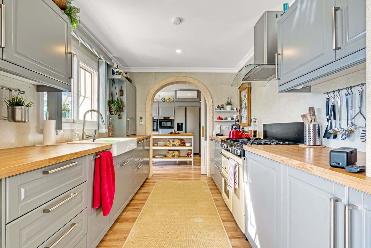Op de hoofdverdieping, gelegen op straatniveau, bevindt zich het hart van de woning. De volledig gemoderniseerde designkeuken bestond oorspronkelijk uit twee afzonderlijke ruimtes en is nu op stijlvolle wijze samengevoegd door middel van een karakteristieke tosca stenen boog. De keuken is uitgerust met een dubbele oven, een extra wandoven, magnetron, ingebouwde vaatwasser, een Amerikaanse koelkast met vriesgedeelte en een kookeiland. Daarnaast is de keuken voorzien van airconditioning.