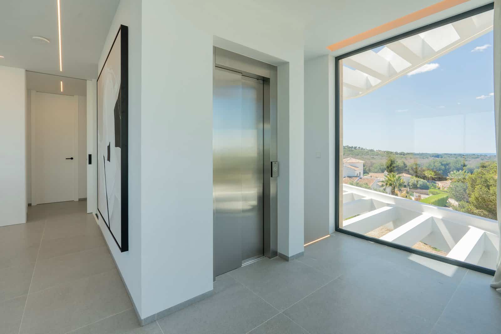 Alle Ebenen sind über eine Innentreppe und einen Aufzug miteinander verbunden. Die Villa verfügt über ein aerothermisches System für Fußbodenheizung sowie die Warmwasserbereitung mit Speichertanks. Zusätzlich gibt es eine kanalgeführte Klimaanlage und ein statisches Wärmerückgewinnungssystem mit zentraler Luftreinigung.