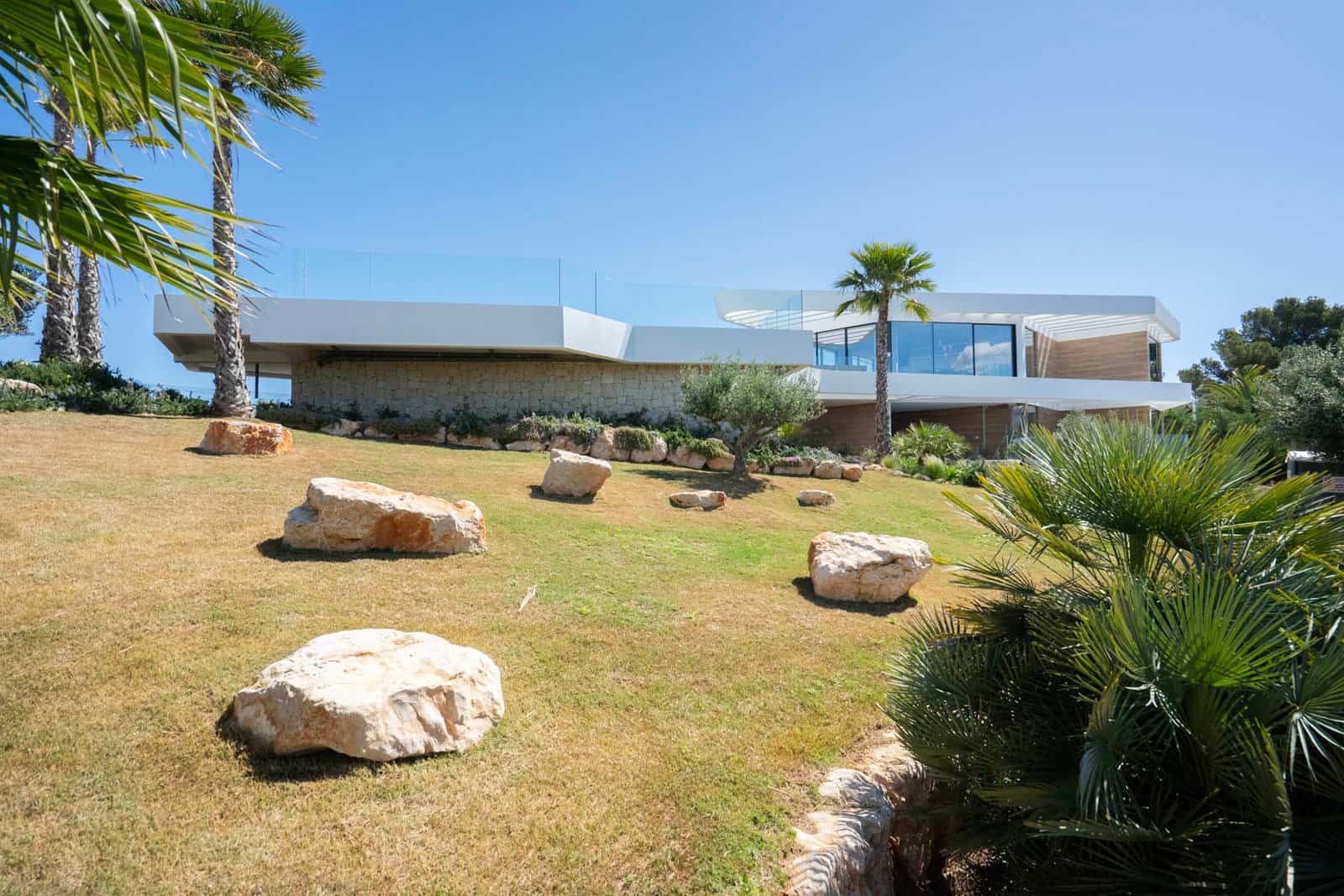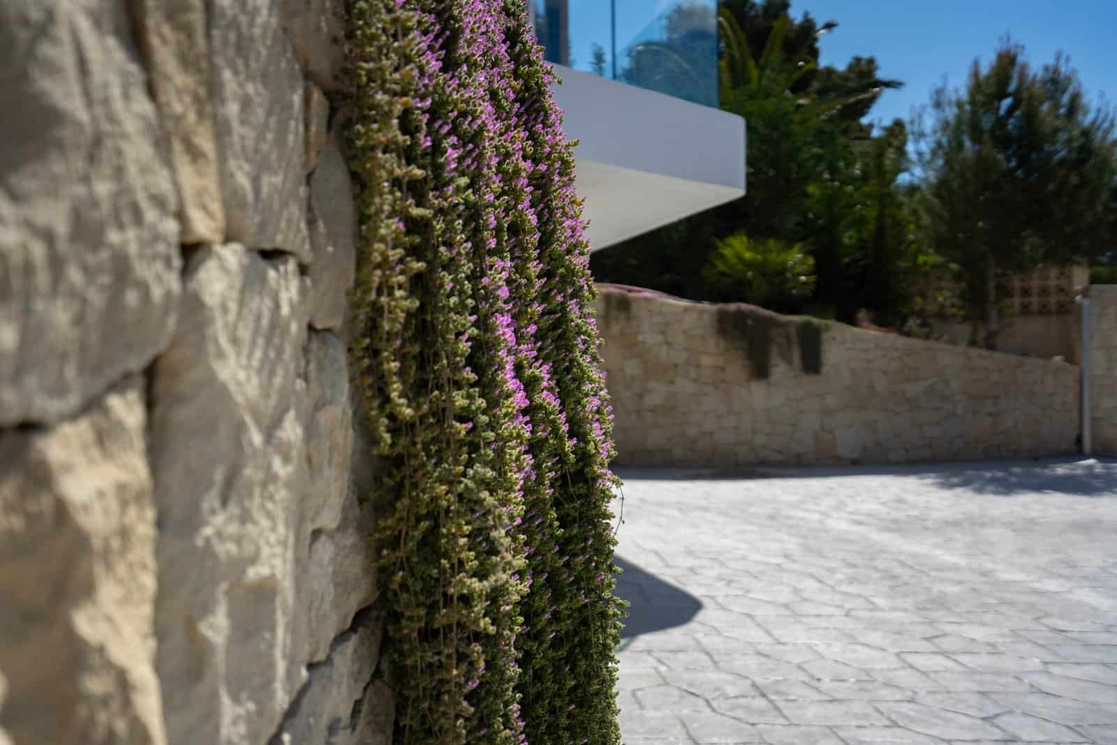De villa is omgeven door een prachtige mediterrane tuin met aromatische planten en bloemen die nauw aansluiten bij het design van deze unieke villa.