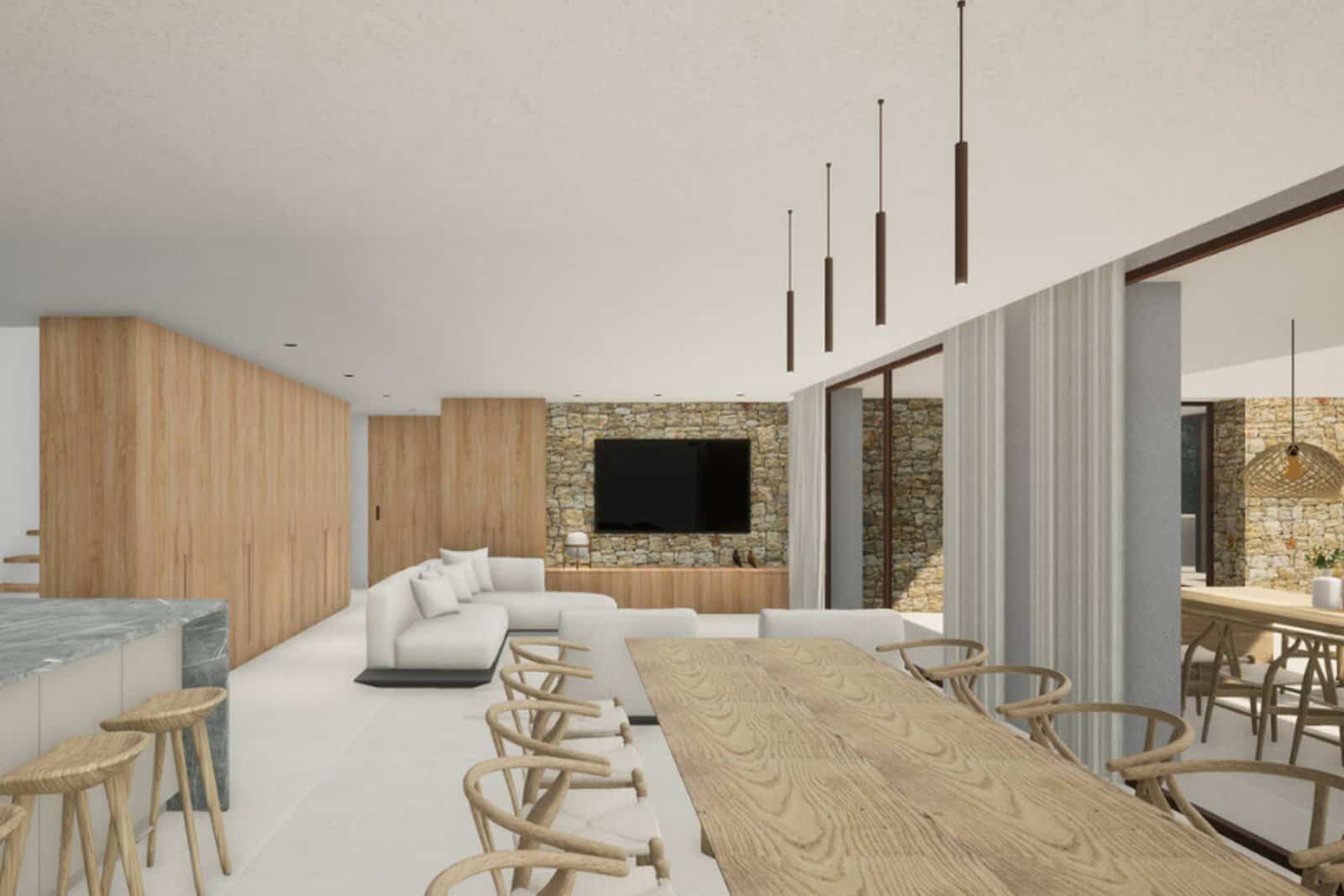 The villa has a modern design with an open layout and a strong focus on comfort. En-suite bathrooms, dressing rooms and several practical additional rooms make it well suited for everyday living and hosting guests.