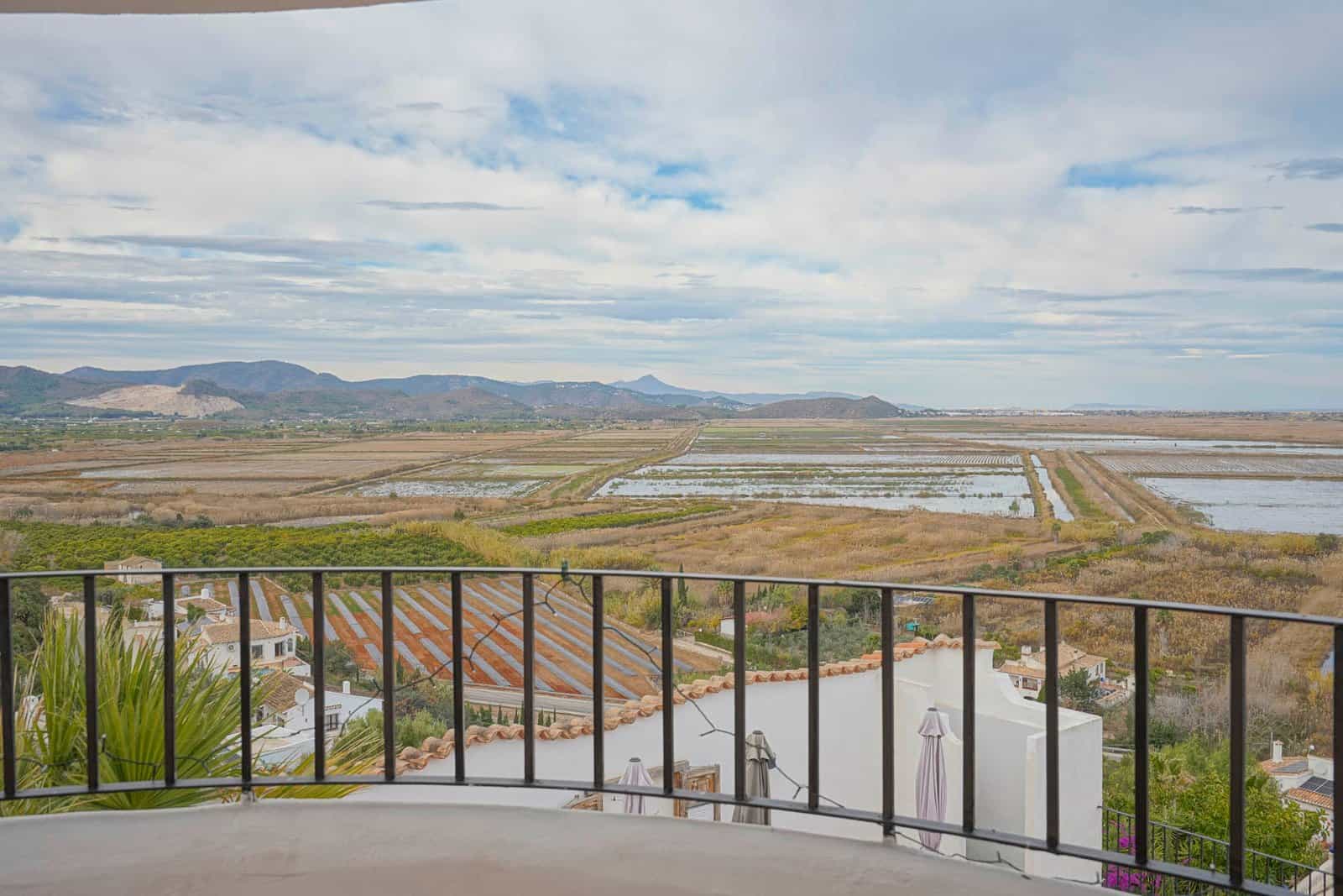 Deze ruime, traditionele Spaanse villa ligt in Pego, in de urbanisatie Monte Pego, en biedt een indrukwekkend 180º vrij uitzicht over Pego, de Marjal de Pego, de rijstvelden, de bergen en richting de kust met onder meer Oliva en Denia.