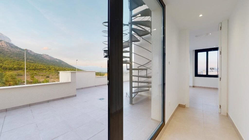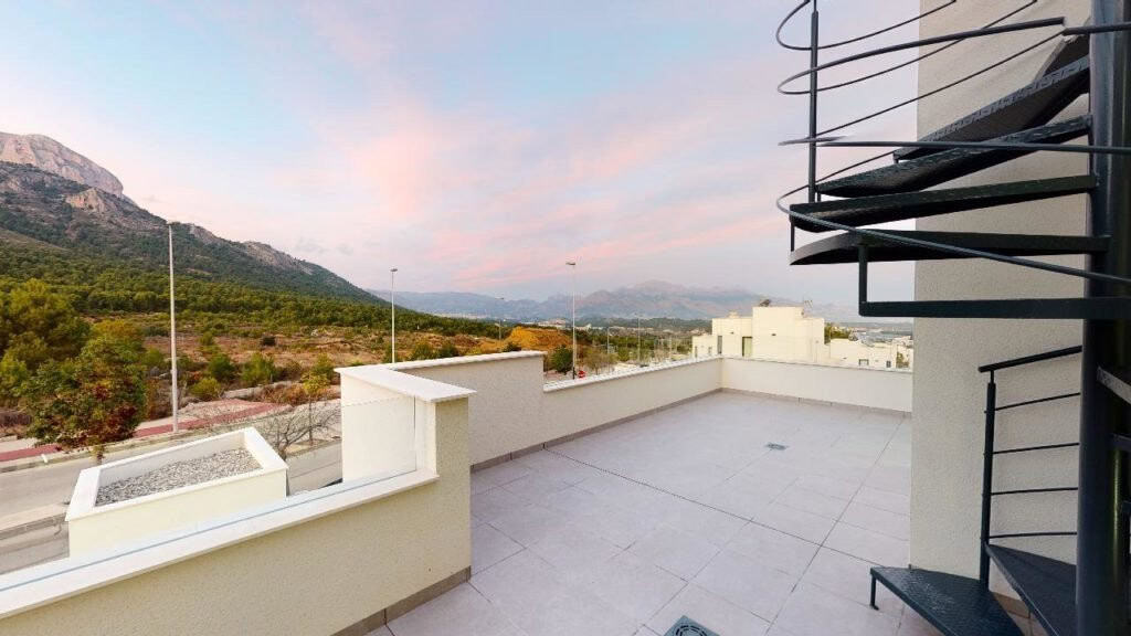 For sale Single family house. Location Polop (ALICANTE). Total area 144.00 m2. Number of rooms – 4. Number of bedrooms 4. Number of bathrooms 4. Year of construction 2023. Distance to the sea 10.00 km. Plot area 310 m2. Orientation East.