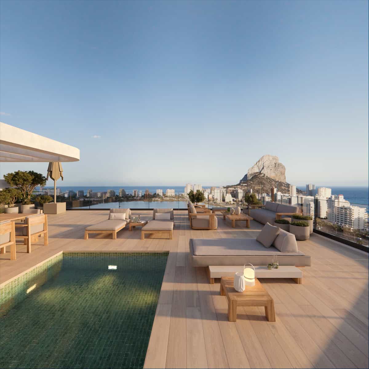 Calpe is a well-known coastal town combining beaches, nature and city amenities. From Arenal-Bol, Arenal-Bol beach, the Las Salinas natural area and the Penon de Ifach are all close by, with shops, restaurants and everyday services within easy reach.