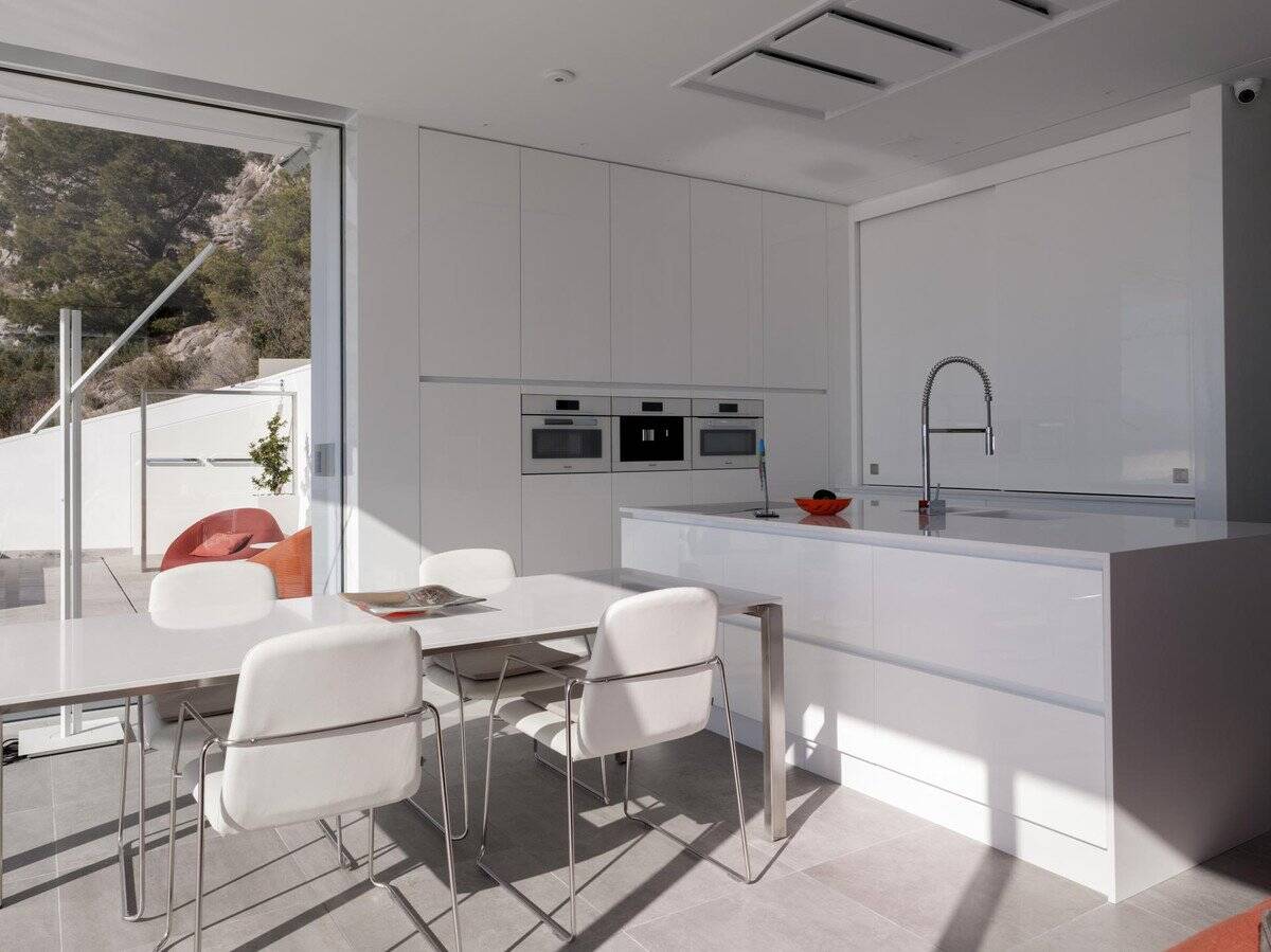 Moderne luxe villa gelegen met een bebouwde oppervlake van 221 m2, gelegen op een spectaculair en rustige locatie van 1621 m2. Het hoogste punt van Mascarat, met het beste uitzicht over de baai, de Middellandse Zee en de haven van Campomanes.