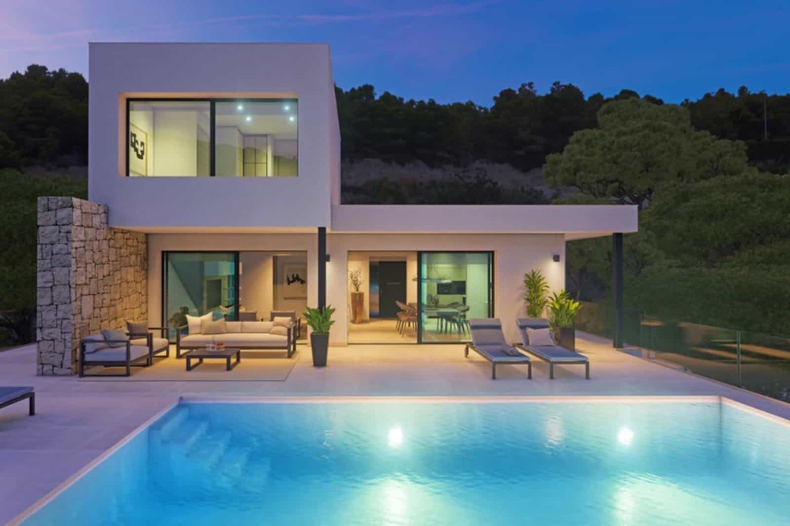 Deze villa is uitgevoerd in een moderne designstijl en is voorzien van airconditioning en vloerverwarming voor comfort gedurende het hele jaar.