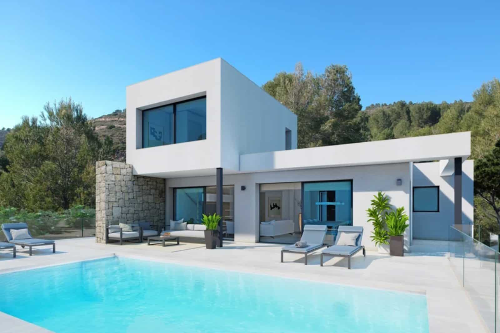 Deze moderne designvilla ligt in de urbanisatie Solana II in Pedreguer Monte Solana en is zuid georiënteerd met panoramisch uitzicht op de bergen.