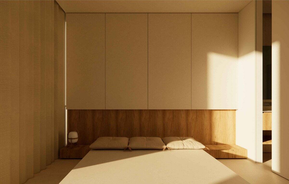 The home is engineered with reinforced concrete technology for long-term durability. Custom flush-to-wall doors enhance the sleek interior look, while the kitchen features natural stone finishes.