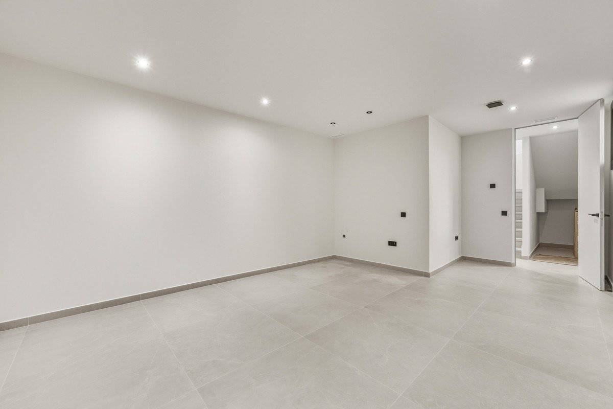 De constructie is uitgevoerd in gewapend beton voor duurzaamheid op lange termijn. Binnen zorgen maatwerkdeuren die vlak in de wand vallen voor een strak geheel. De keuken is hoogwaardig afgewerkt met natuursteen.