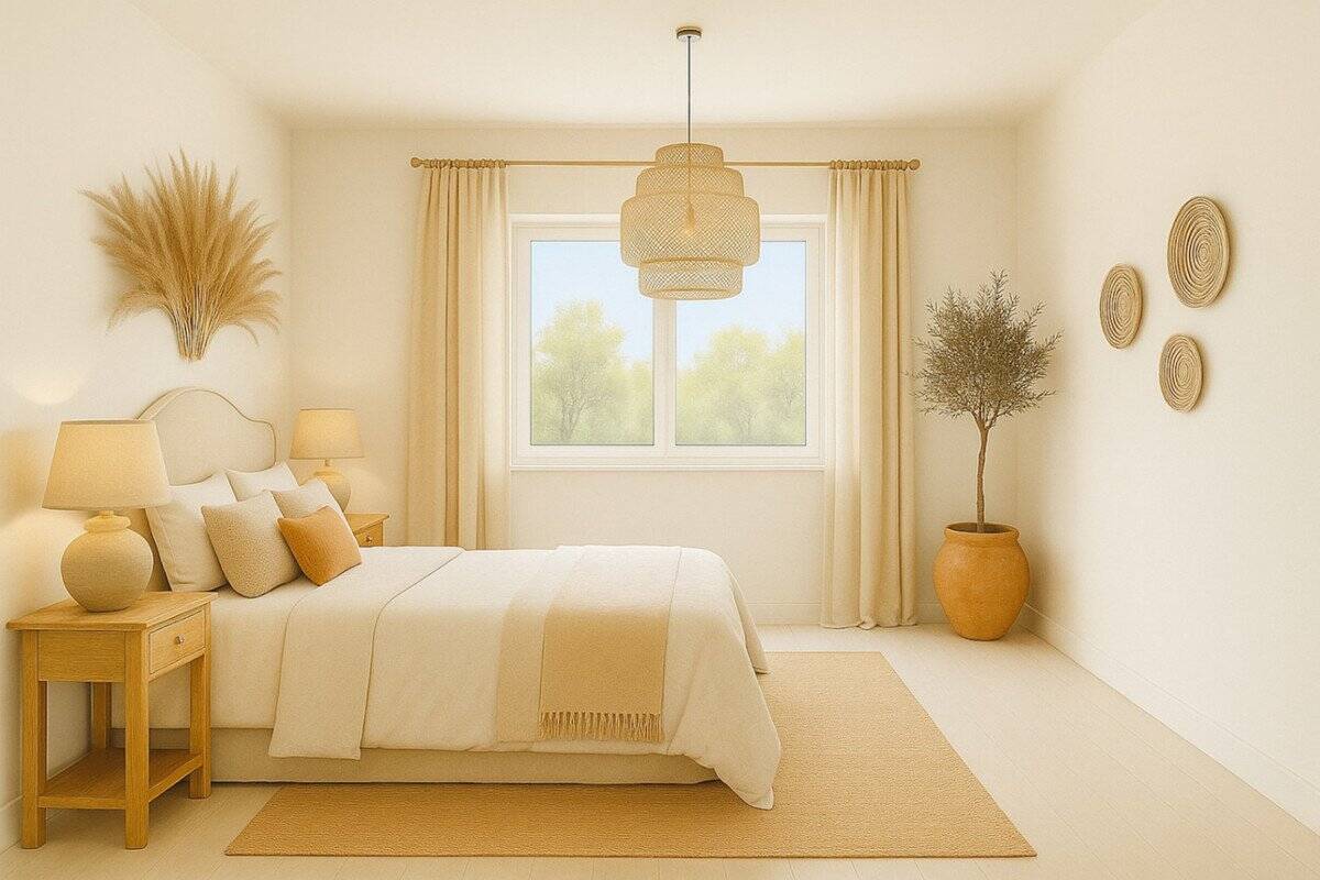 De villa beschikt over vier comfortabele slaapkamers, elk met een eigen badkamer. De master bedroom is voorzien van een open badkamer (of ensuite naar wens) en de overige drie slaapkamers hebben elk hun eigen charme, met openslaande ramen en directe toegang tot privéterrassen indien gewenst. Een extra berging maakt het plaatje compleet.