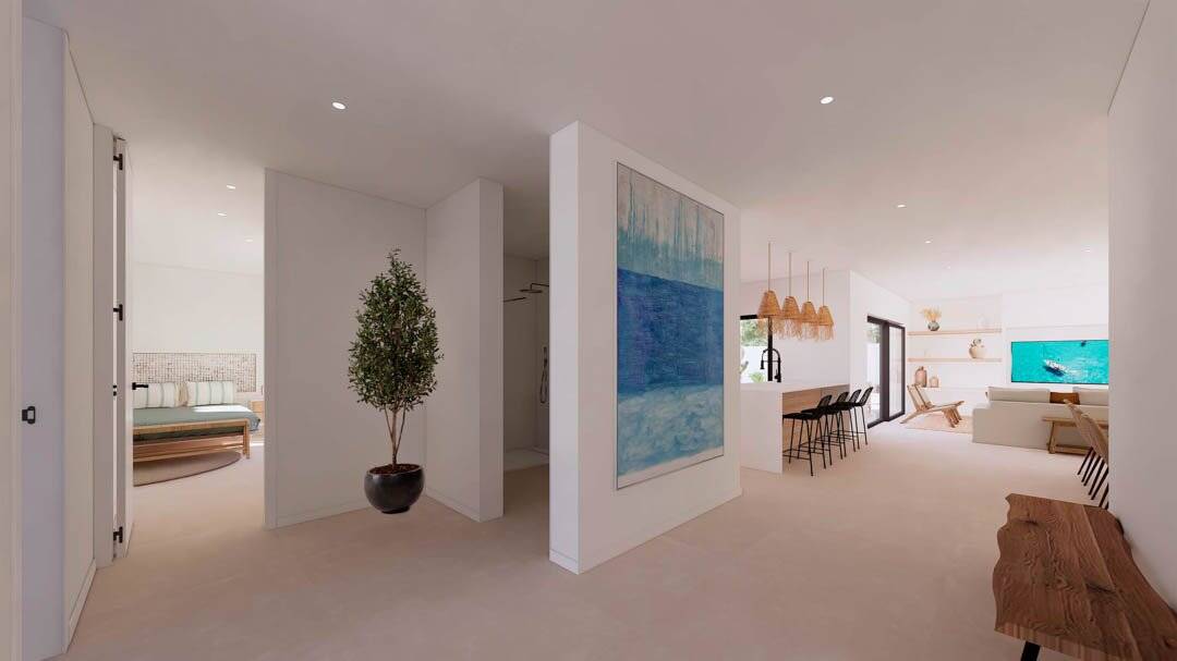 Inspired by Ibizan architecture, the project is planned with careful attention to detail. The selection of finishes and decorative elements is guided by an interior architect, in coordination with the technical team and the architects.